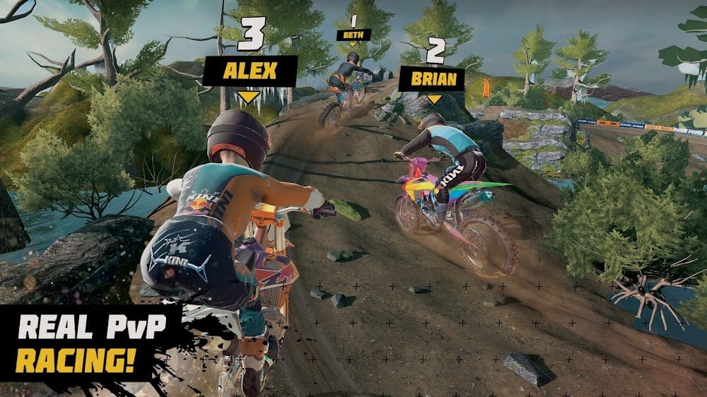 You and up to 23 other players who enjoy riding dirt bikes can collaborate to complete objectives and gain fantastic in-game rewards. You have your choice from a big selection of motorcycles. Besides, the game features massive bike customization, giving you more ideas and choices to customize the bikes with dazzling elements and more. With that, you can have fun with other players in massive tracks and crash each other.