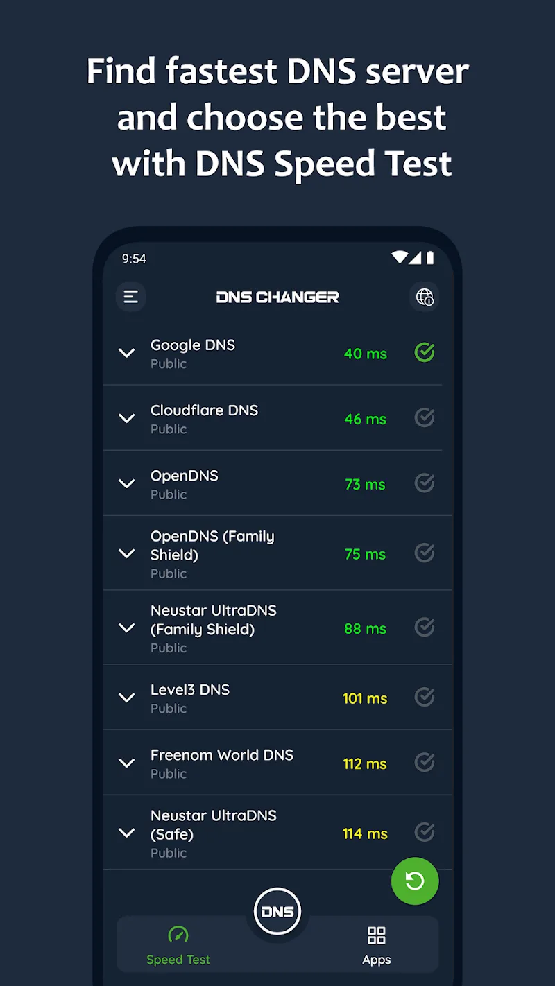 - Fastest Server Speedtest: The application completes the connection process with the new DNS server. Users will experience stronger Internet services. The servers will be listed in a common list for users to easily track and choose. Servers with stable connections will provide better service to users.