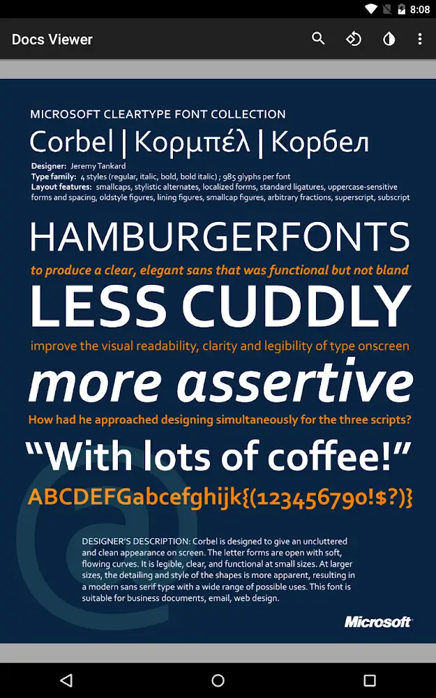 Docs Viewer will thoroughly solve all difficulties encountered in accessing documents. You have the essential tools for reading; change your preferences by going back. The way the system handles files and classifies them is also appreciated. With files sorted by download time, the search process is shortened. Users will be able to read documents in formats like PDF, XPS, and whatever. It can be a long document, a presentation file, or a large graphic file.