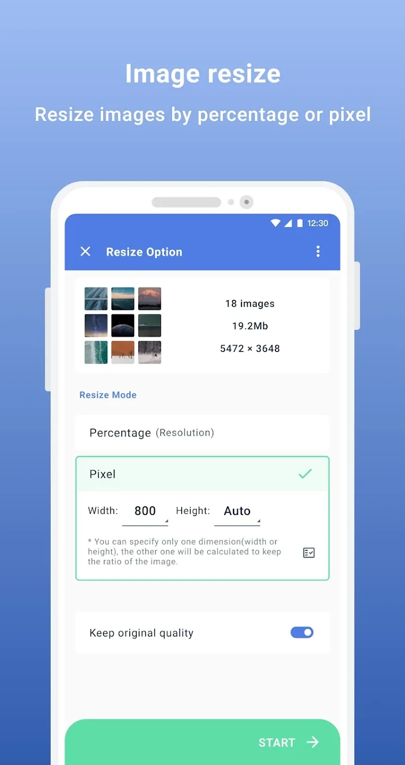 At its core, DotPhoto offers three tailored approaches to resizing images based on your specific needs. Auto applies intelligent presets for common use cases. Custom Size lets you define target file dimensions. Resolution & Quality mode adjusts pixel density and compression ratios.