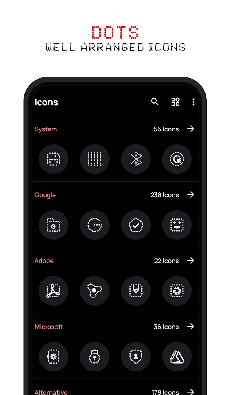 The application provides thousands of Dots-themed icon templates to provide users. The diverse collection of templates and handcrafted designs makes users feel excited. Each icon is a flexible and creative combination of dots. Old icons will be stylized to create a new, beautiful, and attractive icon set.