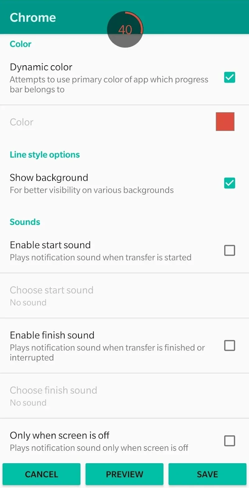In addition to the ability to visually display the download progress on the device, the application also provides its users with the ability to customize it according to their own preferences. The application will provide its users with the ability to choose whether the download progress bar can be displayed in a straight line or a percentage circle style. Not only that, users can also set up their own download sounds to notify them that the download is complete.