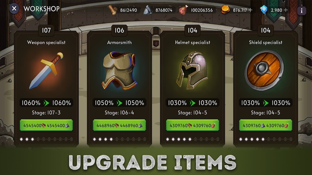 Idle elements are also included in the game’s gameplay, as the mechanics allow you to generate an infinite supply of resources at the cost of some time. You can upgrade the mine idle functions, allowing you to extract more resources for a set time, enabling you to invest in expanding your empire. The idle system, which also applies to other parts of the game and is interconnected so that everything works together, allows you to feel prosperous while continuously improving every detail and making the empire impervious.