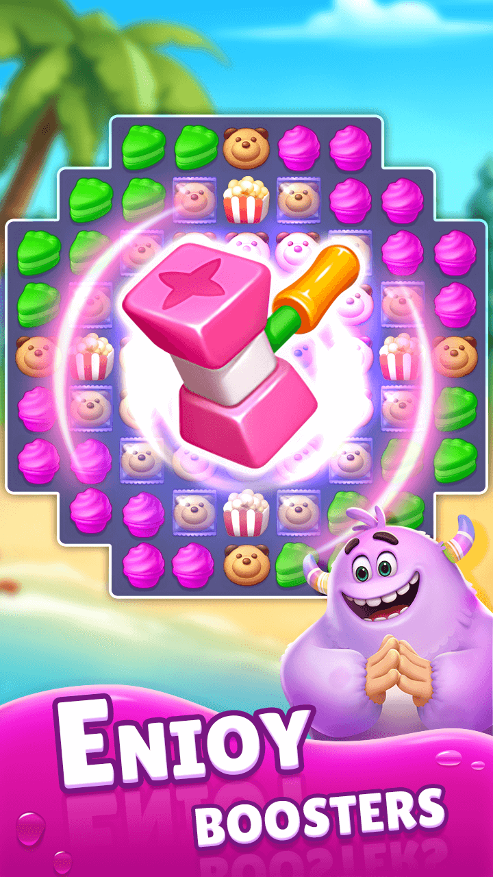 When playing Sweet Crunch, you can use the game’s clever support item system to gain several benefits. The item system in the game is always heavily advertised. Each item will have different benefits that players need to experience directly. The advantage multiplies in proportion to one’s resource wealth. Each hammer, rocket, and another thing in the game has a unique ability. Take advantage of this opportunity to add these useful boosters to your collection.