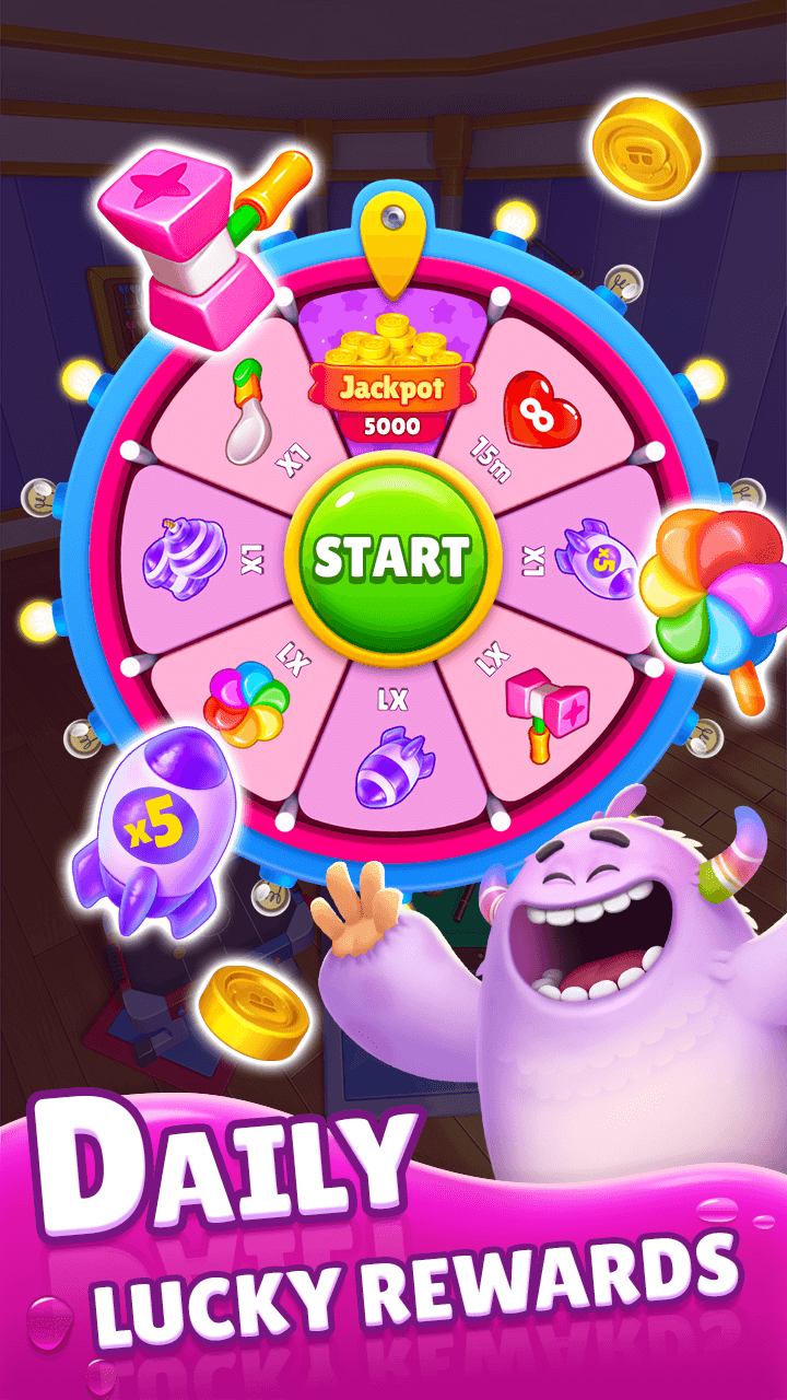 The abundance of offers often amazes players. The most anticipated prize by players is the Wheel of Fortune. If you do this, you essentially play a game of chance with the clock spinning. You can double and improve your score and earn more coins, hammers, or even sweets. Daily events allow you to earn rewards. If players have access to these offers, they will find it easier to progress to the next level. Especially as the levels become more difficult and the candy patterns that form become more complex.