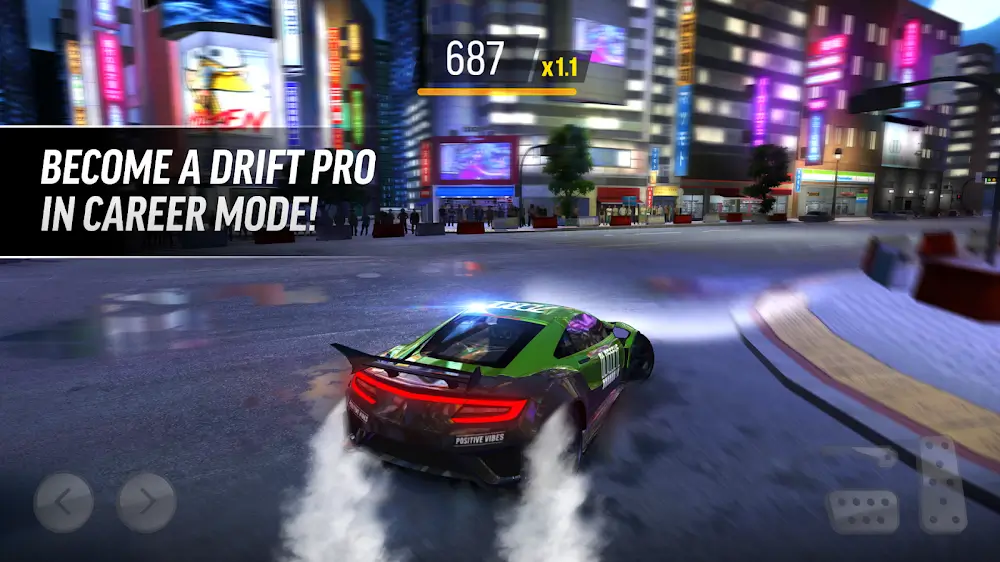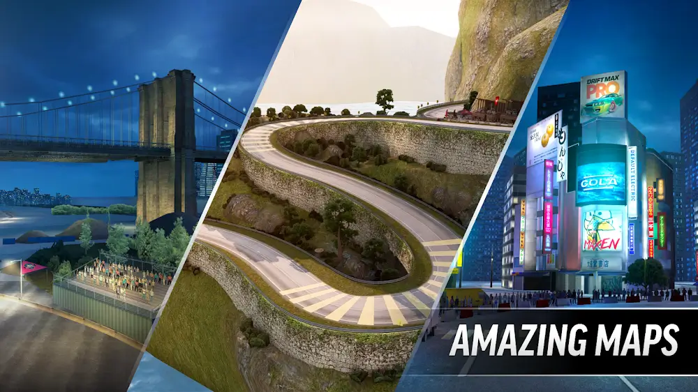 The challenge does not stop there but continues at different levels as players will come across many interesting racing locations, and they can be surprised and impressed with their designs. It could be a city full of lights or an abandoned area, and of course, each location will have different widths to help you show off drifts. At the same time, each level brings a new feeling to you, so you must observe and move the car appropriately using drift to be able to follow the constantly appearing route. It can be said that once you start, it is difficult for you to take your eyes off the experiences in this game.
