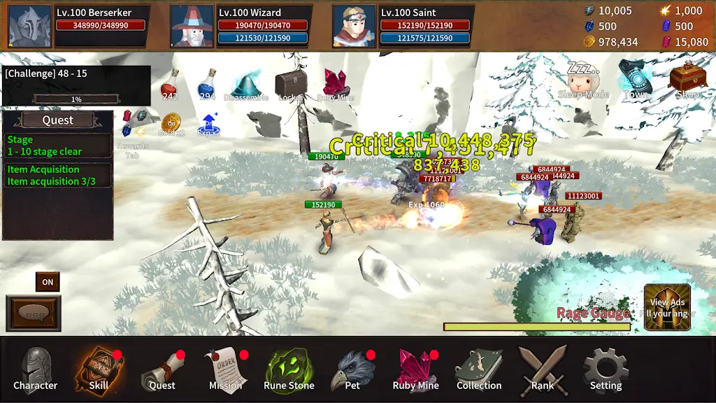 Dungeon of Infinity will take you to the most interesting, attractive, and epic monster hunts. You will be able to choose three powerful warriors with the best fighting skills to form a group and start your hunt. The game will bring you the most attractive and unique monster hunts, where you will come across extremely diverse monsters for you to freely show off your hunting skills. What are you waiting for? Start hunting right away.