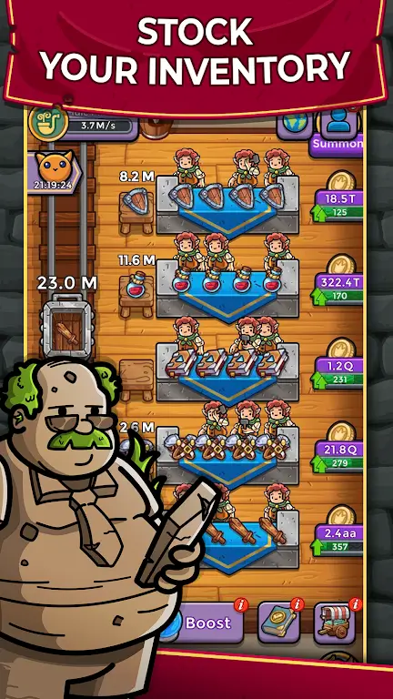 To ensure your enterprise runs like a well-oiled machine, you’re bestowed with the power to recruit unique champions. Each individual boasts distinctive talents, providing time-limited boosts and power-ups to your shops. Whether you need a helping hand with enchanting items or managing your storefront, these champions are at your disposal, working tirelessly to boost your bottom line.