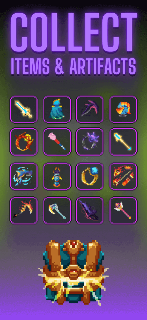The roguelike elements of Dunidle: Idle RPG make every run of the game unique. Each time you venture back into the pixelated dungeon, you’ll find fresh quests and challenges waiting for you to take on. The game throws unexpected challenges each round, keeping you on your toes the whole time. The ever-evolving nature of the game’s components ensures that players will never tire of it.