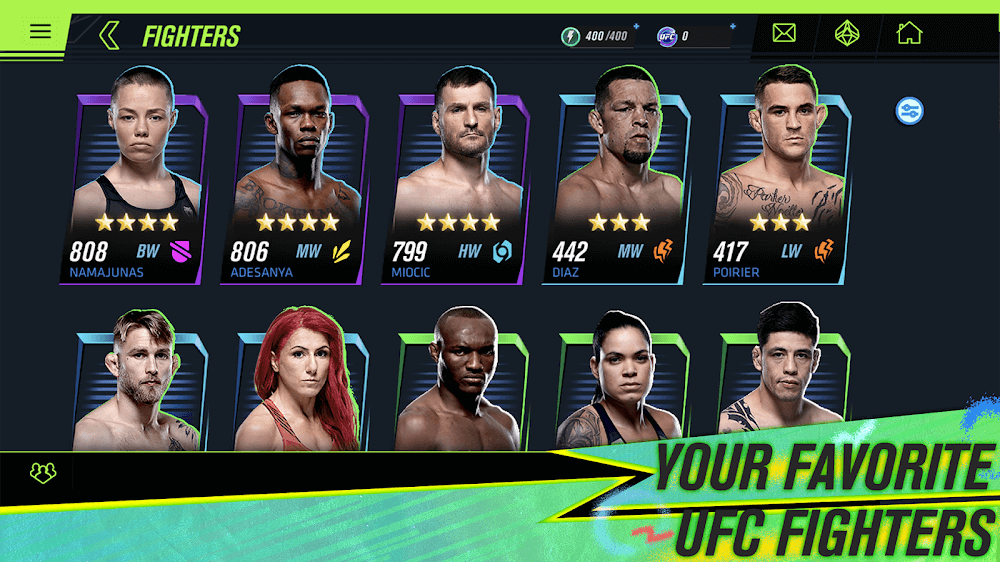 As you level up your favorite characters, you’ll get access to more powerful versions of them. Your fighter’s MMA deck of special talents will become available whenever they gain a level. Take part in Events, Raids, Campaigns, and Special Events to level up, obtain loot, and collect experience that can be used later. It is possible for anyone, from the most inexperienced player to the most seasoned fight fan, to reach glory in the world of sports; all that is required is a burning desire to triumph, no matter the cost.