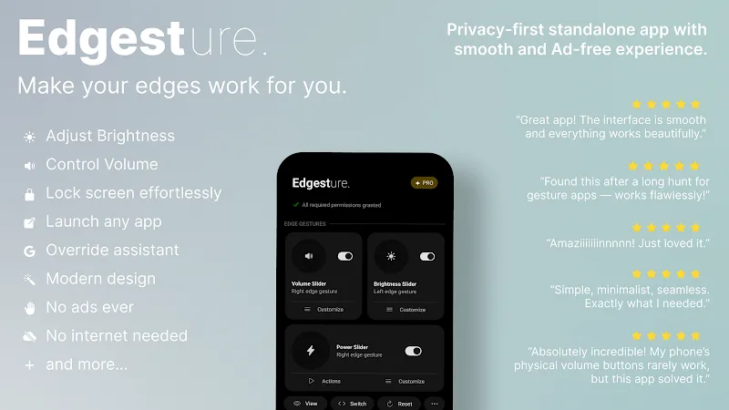 Edgest is a smart and convenient app for you. It will make your phone more useful and convenient. You’ll have access to smart features and tools that make using your phone much easier and simpler. With this app, you can use your device with just a few simple gestures. Are you ready to experience this attractive convenience?