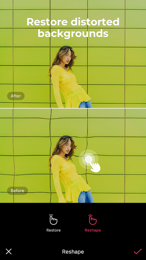 One-click retouching: Get perfect skin, facial features, and body proportions in a snap with One-Click Appearance.