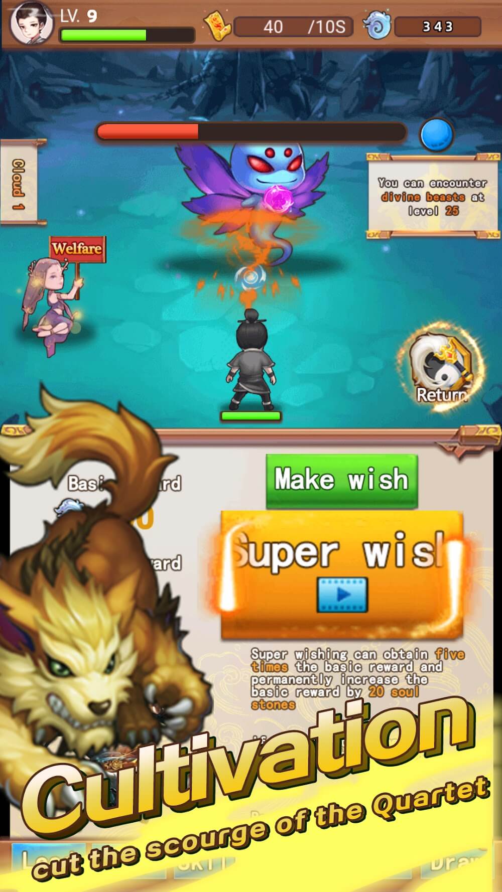 Coming to Eternal Of Swordsman, you will be transformed into a small Taoist who has just awakened the power of immortality and started the journey down the mountain to destroy evil. Not only can you participate in dramatic battles, but you can also witness the entire process of developing into an immortal legend of the character. With infinite mana, nothing can defeat you, and try to become a god. You will fight giant monsters, but they will not be able to attack you, so the task is to destroy them. The character will automatically launch moves and skills to fight, so you only need to equip the necessary items to supplement his strength.