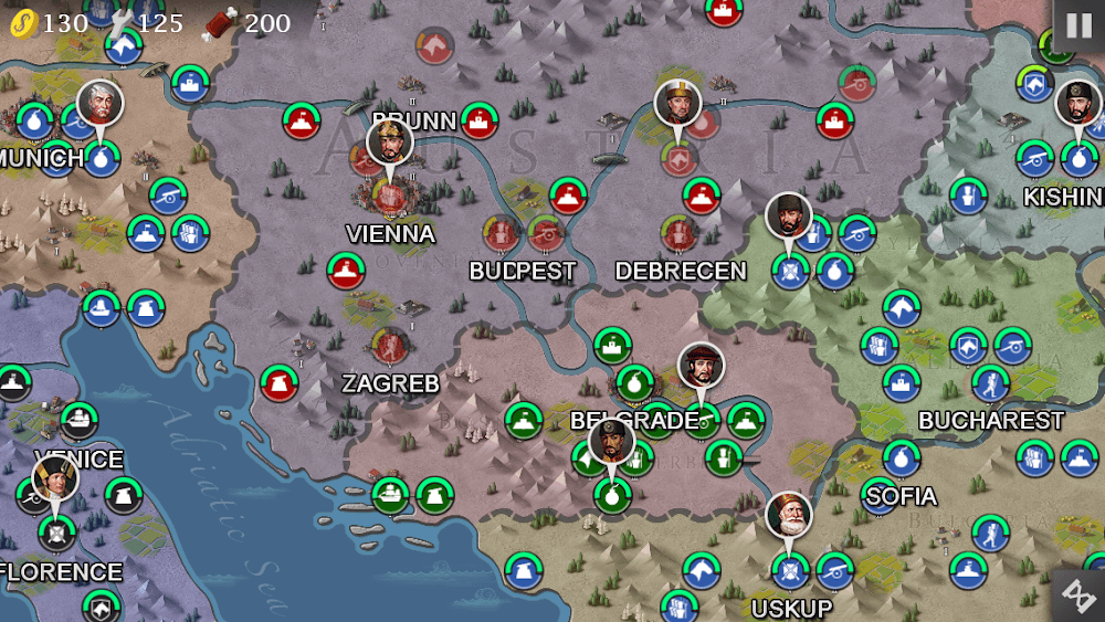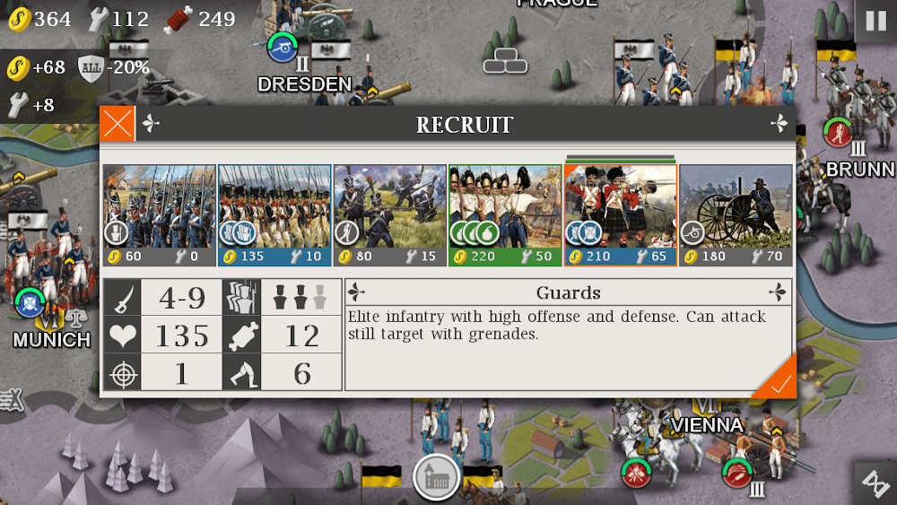 The process of experiencing European War 4 will help you get acquainted with the 200-character system. Their intelligence and sense of responsibility are also part of the reason you win this battle. Generals like Napoleon, Murat, Wellington, and many more will be provided to you in the menu system. The war will spread worldwide so that players will have more enemies and quests. The resources of other lands are always what you want. That is also the reason why this war broke out. Players can train and build their squads to improve their combat achievements. More than 46 types of skills, applied to many different departments in the army, will help you quickly overthrow the enemy.