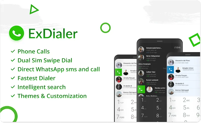 ExDialer is an innovative dialer app focusing on efficient calling and messaging via customizable swipe gestures. Switch between SIMs to dial specific contacts with a swipe. Message unsaved numbers on WhatsApp by swiping instead of adding them. Personalize swipe actions for different apps. Search contacts and dial in one seamless screen. With dual SIM support, direct unsaved messaging, customizable swiping and intuitive interfaces, ExDialer optimizes mobile communication.
