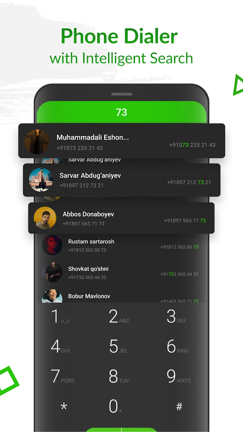 Complementing swipe dialing, the clean interface shows everything needed in one screen. Call logs, contacts and the dial pad are accessible instantly. Search finds numbers quickly thanks to smart T9 algorithms. The design makes dialing intuitive.