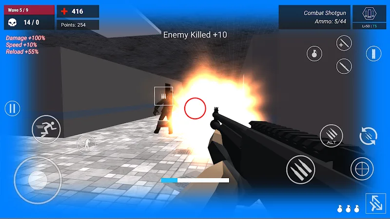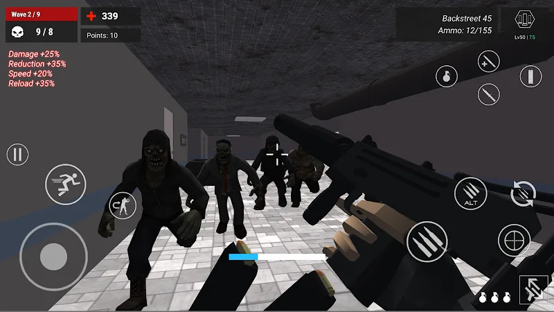 The zombie swarm never ceases. Their numbers and power grow continuously over time. Eventually you will face down lightning fast enemies and mighty mutant zombies designed to push your skills to the limit. Brutes ignore damage and explode when killed. Bombers detonate on death. SWAT zombies wear armor and helmets. Hunters sprint full speed at you. Stay frosty and bring your A-game.