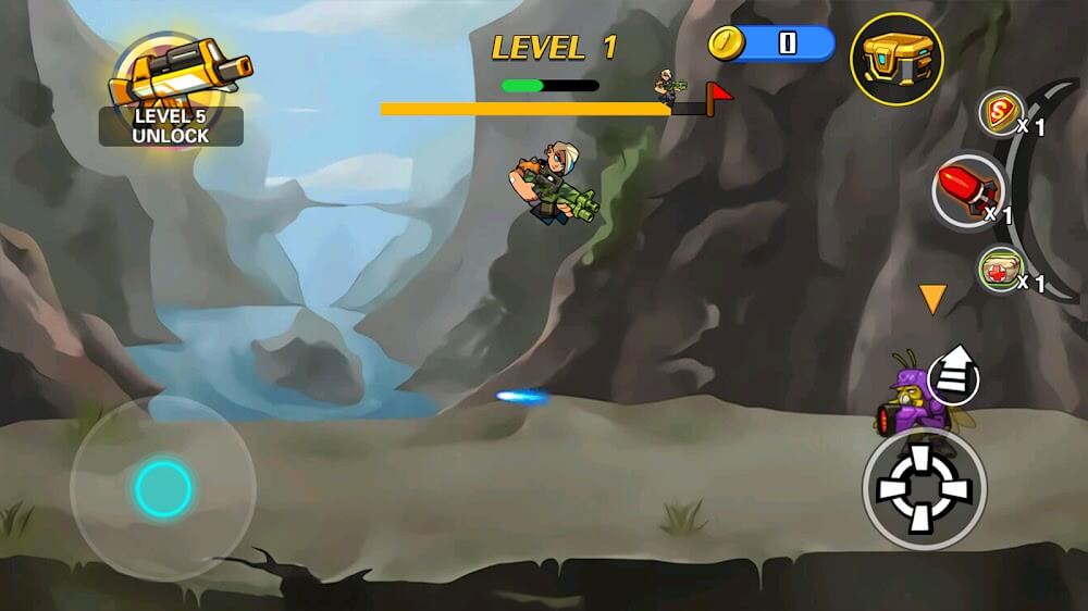 Extraordinary Mercenary will divide the game screen into levels arranged from easy to complex so that you can quickly get used to the gameplay. When entering each battle, you will have to find a way to destroy all the monsters and help your character increase the level. With each killed monster, the energy bar will increase gradually, and when you reach the maximum level, you will be upgraded to a higher level. Monsters will constantly pull towards you to attack, so you need to destroy them as quickly as possible before being counter-attacked. Some monsters will shoot you with weapons, so it is imperative to move skillfully and combine with jumping to dodge the bullets.