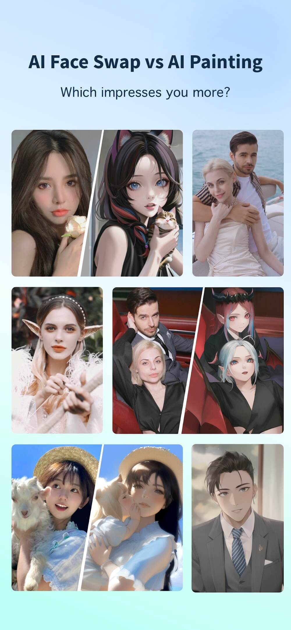- Fun Options: Users are allowed to customize the image to classic, anime, or novel fantasy.