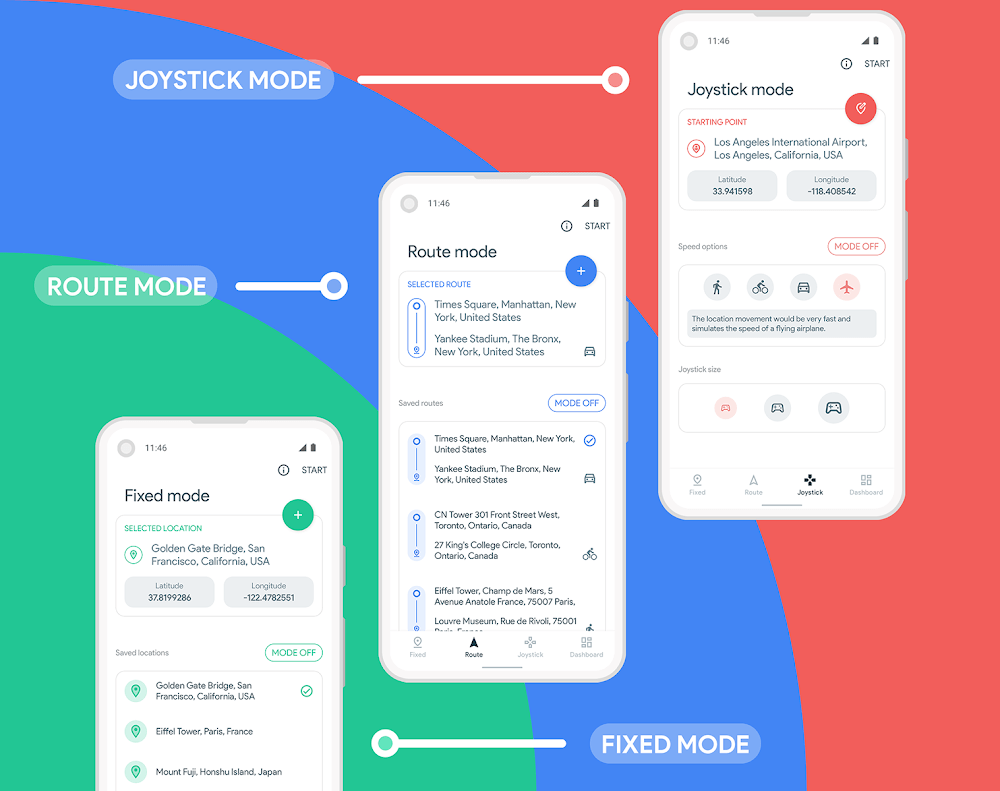 When using Fake GPS Location, the user can change the device’s location to a fictitious point that will serve as a fixed location for all users. It has the capability of simulating where you should or should not be. Using this phantom fixation, you can reposition yourself and convince everyone that you are somewhere else. This mode can be used in any situation and by any application; the individual user’s goals determine its specific application.