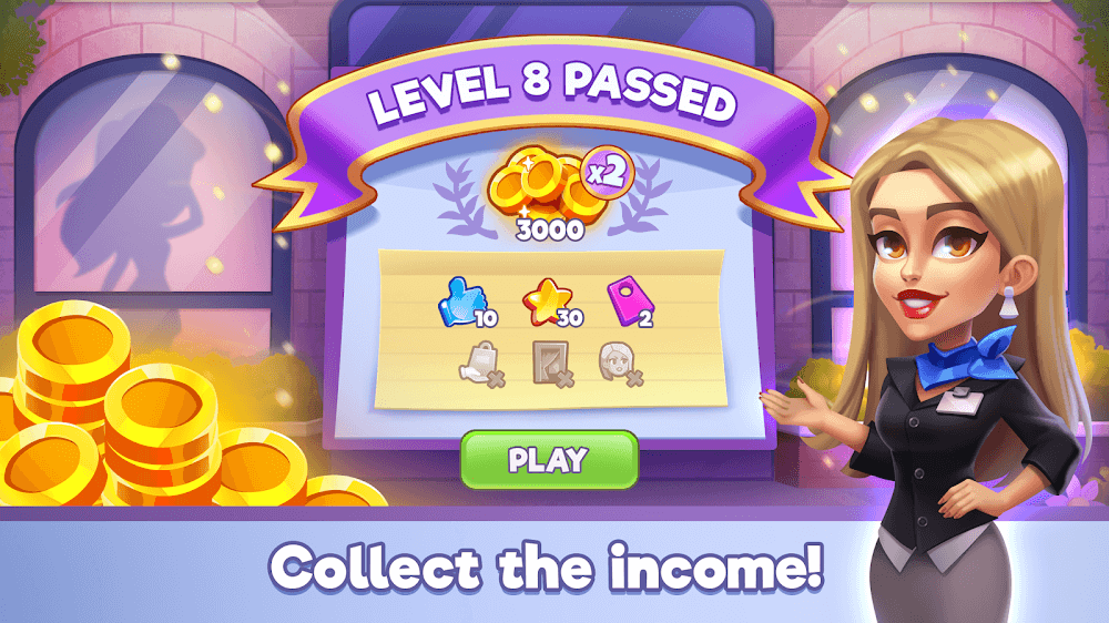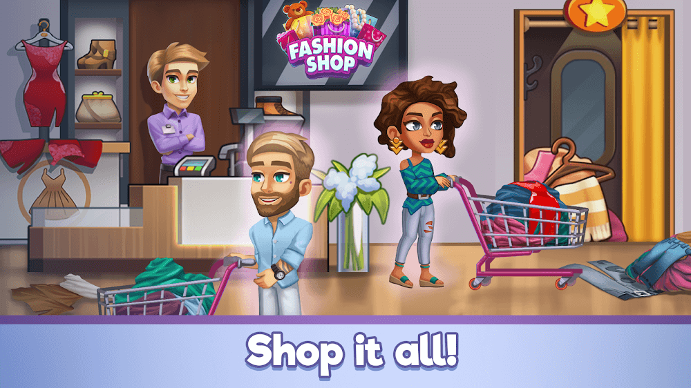When role-playing and starting in Fashion Shop Tycoon, the player will be a fashion business shop owner. You need to fulfill the customer’s needs within the given time. When it first opens, your shop will have a salesman, Mark. Specialist Mark will maintain a clean store and assist customers with product collection, navigating changing rooms, and entering doors. Players can assist Mark in completing missions by controlling him and ensuring he does things in the correct order and at the right time.