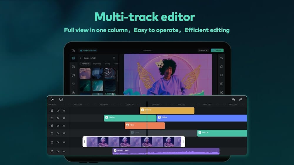 Professionalism is reflected in FilmoraHD’s main interface, as it provides essential features that you can quickly recognize and use. At the same time, the most interesting thing now is the use of different layers for editing – something that is no longer new but creates millisecond precision. So you can arrange content to appear when you need it and ensure that the edited elements line up and form a finished product. If there are changes, just change one line, and the other lines will not be affected.
