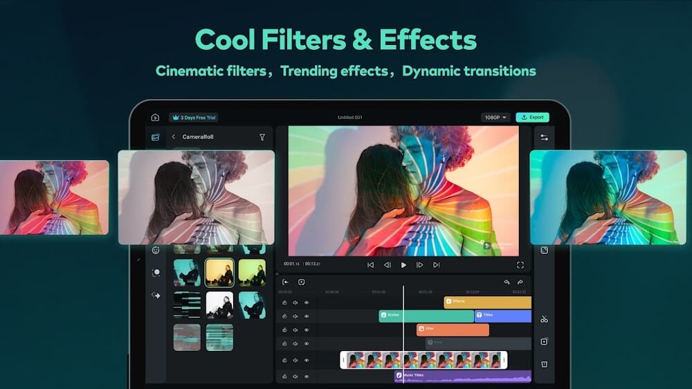 Effects and colors are always features that many editing applications are interested in when users can simply change the theme of the content. For example, bright colors often go well with fun experiences like on vacation or with friends in a memorable place. However, the color black and white will create a certain nostalgia for the viewer with the same content. Therefore, a series of colors and effects can combine together in many cases and create surprises and attractions for those who are about to view your product.