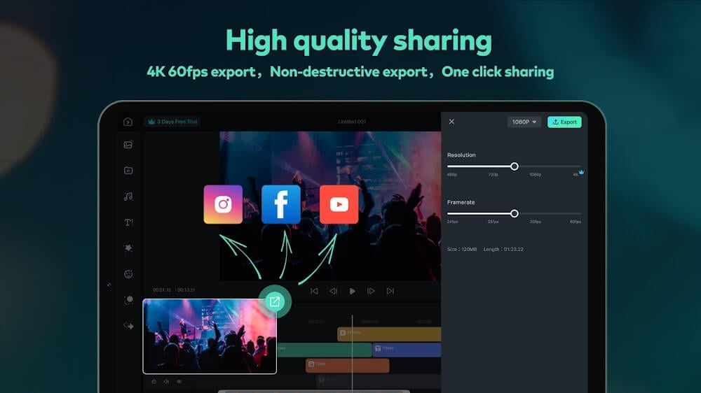 Once you’ve taken the time to perfect your product, sharing it is a must, and this feature is nearly the same across platforms. With just a few simple steps, sharing is done immediately, and you will also feel confident that the content you create is suitable for the time. This comes from the resources that the application allows you to use, which are always the newest things that are highly appreciated by many people on platforms such as background music. So, create great content, and the app will do the rest for you.