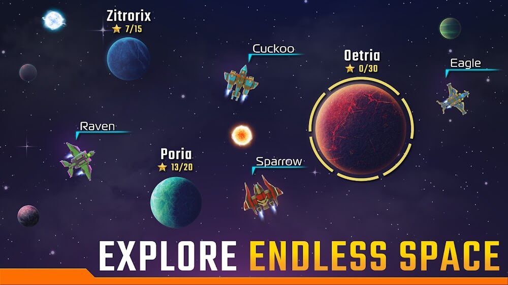 You can select different Hero characters and weapons to fight with the wild creatures and defend yourself from their attacks. Earn rewards by clearing each level; with that earnings, you can upgrade your Heroes and weapons, which will help to defeat the Boss Arachnids. Your destination location will mark on the map, and you can double-tap on that location to fly your spaceship to destiny. If you detect any dangerous biosignatures, add a few more Heroes to the squad. There are multiple chapters, and each one consist of levels like Arrival, Menace, Lair, Assault, Setup, etc. to add Heroes click on the plus symbol and tap the Hero’s portrait, then click on the attack to start the battle. To distract enemies, activate the defender’s skills. And to move between the systems, you can tap on the Galaxy button and select the marked system.