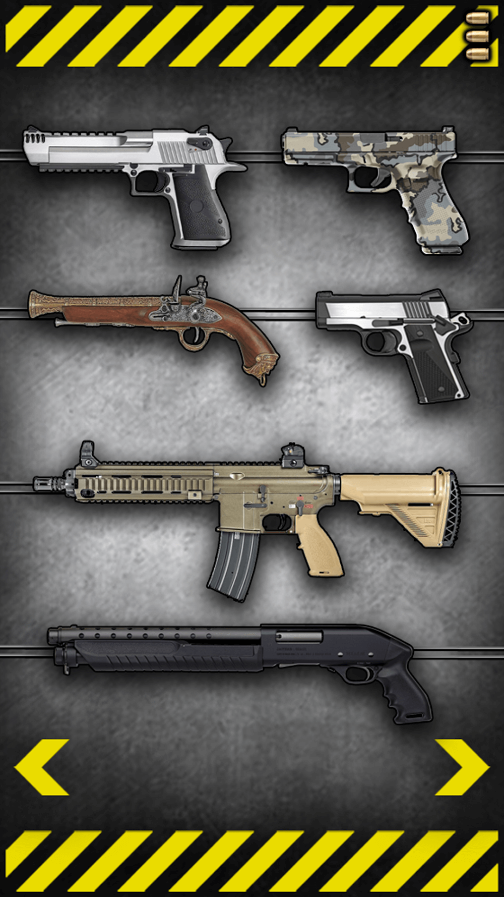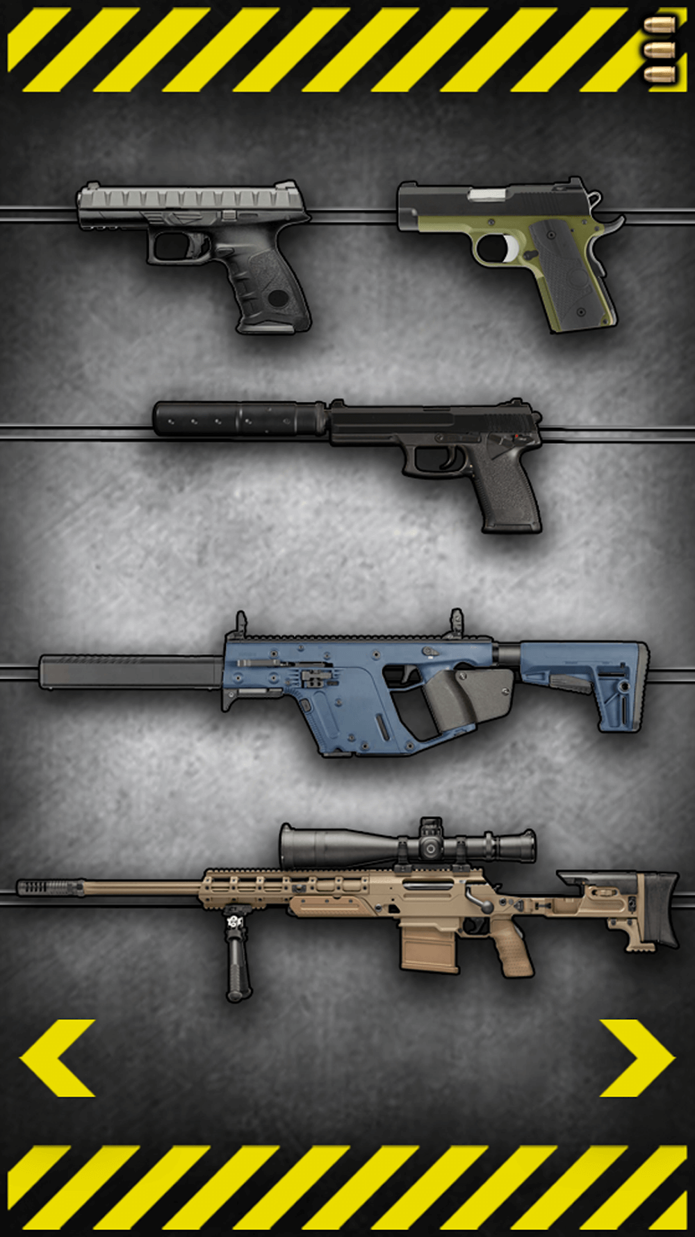 Fire Weapons Simulator lets you experience more than 20 modern guns with accurate sights and a fun recoil system. This is exactly the arena for professional snipers to show their steel spirit and great hunting ability. The weapon model is realistically depicted with every detail of the damage and shooting happening as if it were real. You should consider each type of gun carefully before many different assassins because they always give unexpected attacks you can not anticipate.