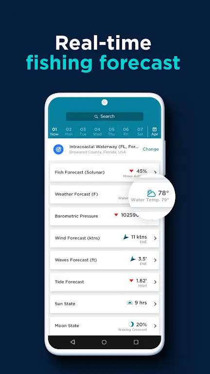 • 7-day weather patterns: During different trips, users should try checking the application’s forecast. From there, new routes will be created and fishing will be optimized for efficiency.