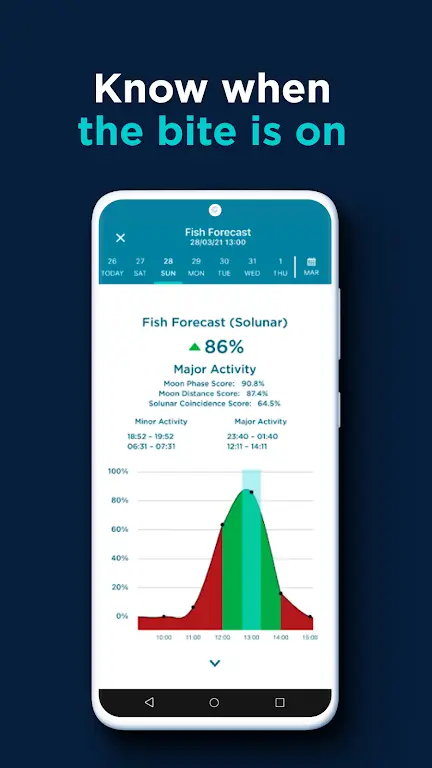 • Ultimate fish forecast: The system helps you identify the best times to fish with local based on time criteria. At the same time, the time when the fish are most active is also added over time.