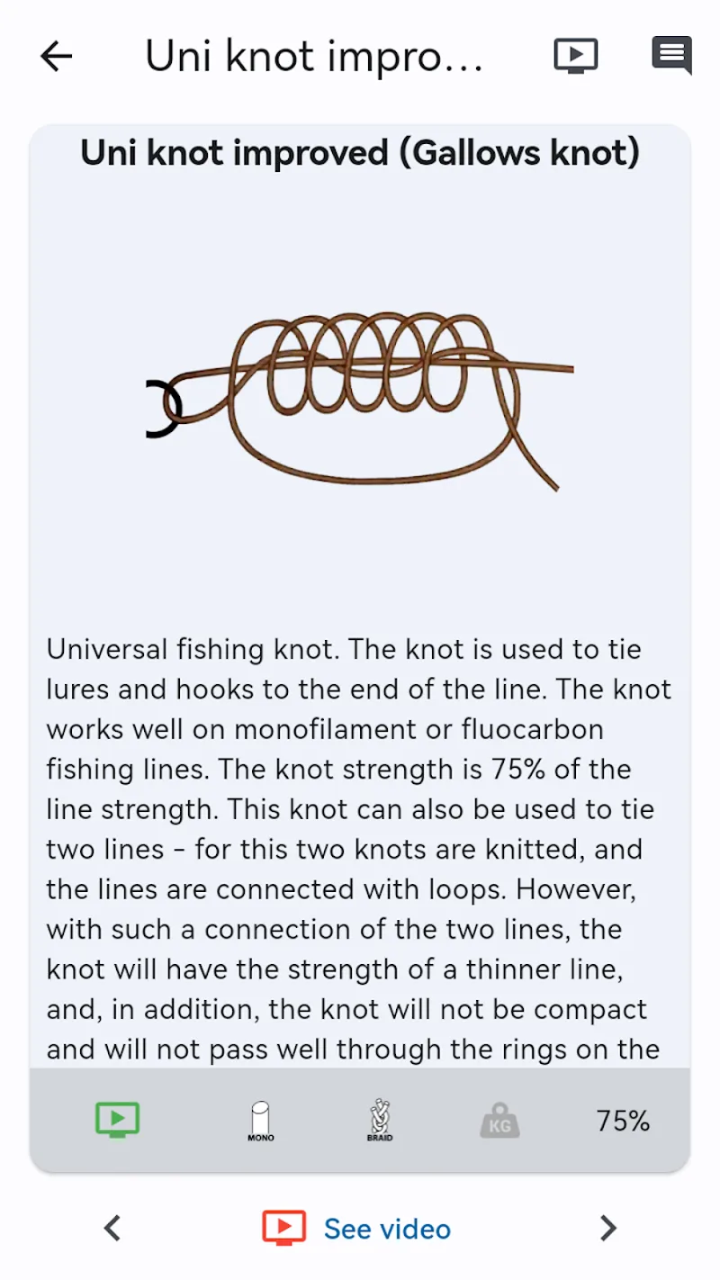 - Line Recommendations: The application provides objective recommendations for suitable fishing lines to help users determine the correct purpose of use and the right knot.