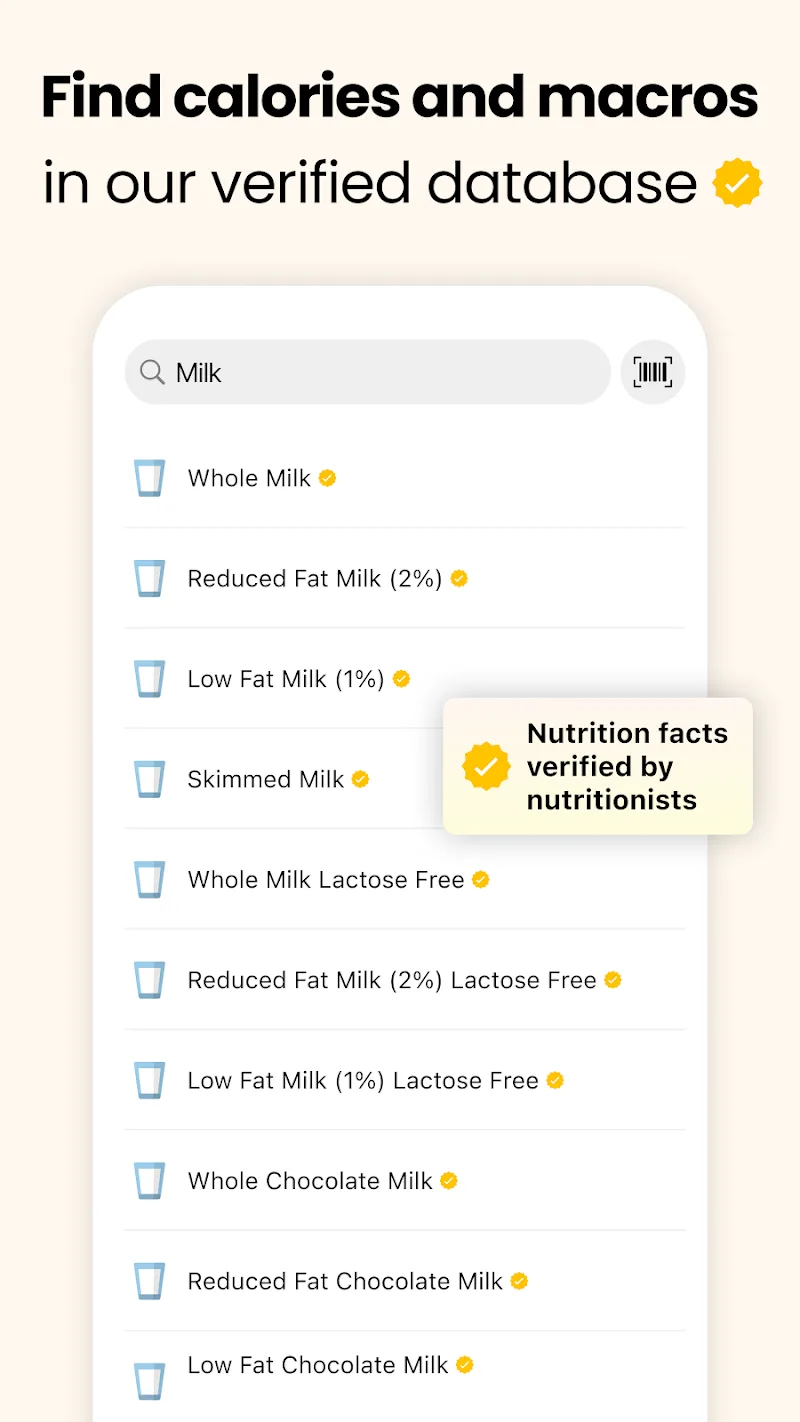 - 400,000+ authenticated meals: The application will help you find information about the number of calories and macros for more than 400,000 products with certified authenticity.