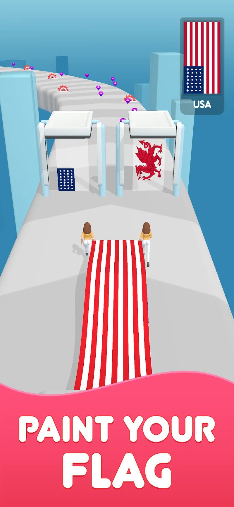 Flag Painters will turn you into a painter and start the most interesting and exciting games. Coming to this game, you will come to countless attractive and unique levels with diverse challenges and obstacles. In this game, you will have to compete with others around the world. You will come to extremely dynamic and crowded levels. What are you waiting for without coming to these exciting games right away?