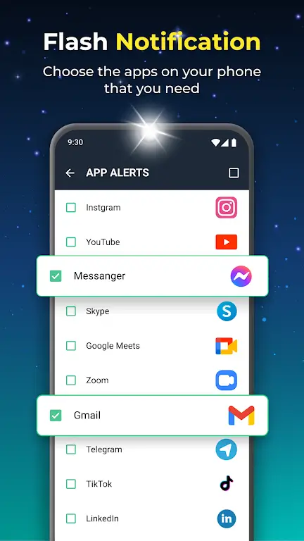 No more boring default notifications that make you miss important notifications and calls. The application will bring you a signal light to your phone right now. This light will flash or light up your phone with new notifications or incoming calls, helping you quickly recognize it.