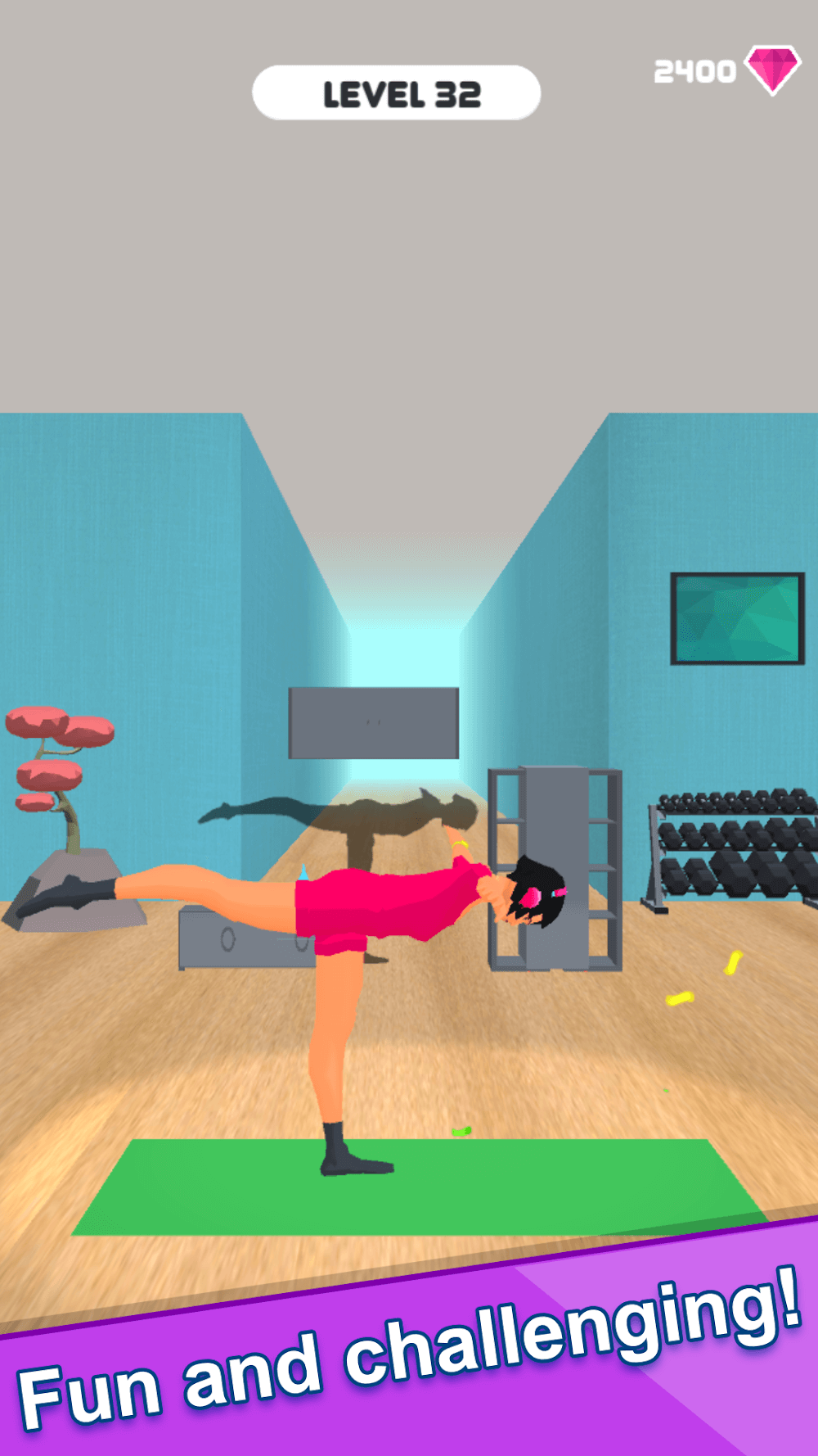 If you hear about the task you need to perform, you will most likely feel anxious because you do not know how to control the athlete girl. But the makers of the game have designed for you a special character control system with just taps on the screen. When the obstacle approaches, you must repeatedly tap the screen to change the yoga movement and stop at the move that matches the created pattern. At the same time, you will also need to control your character to move and stop at left / middle / right positions to overcome obstacles completely. The challenges will help you train your reflexes to reach the highest levels instantly.