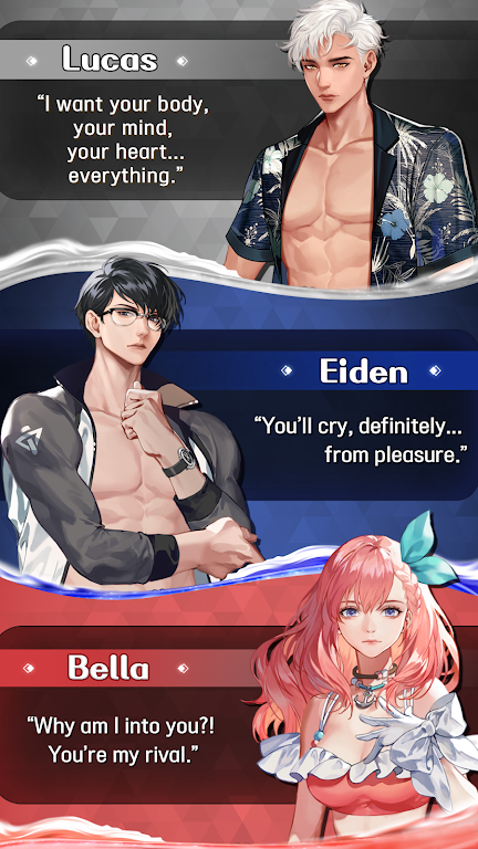 And who might you be rubbing shoulders (or more) with on this sultry isle? Lucas, the millionaire with depths as fathomless as his pockets. He’s magnetic yet mysterious and clearly has more than business on his mind. Then there’s Eiden, a hotel manager who’s affable but keeps his cards close to his chest. “Call me Master,” he says with a smirk. Last but not least is Bella. Straight-talking and love-hungry, she’s ready to dive into the game with one pressing question: “Do you prefer cats or dogs on the bed?” With such diverse characters, love and intrigue are inevitable!