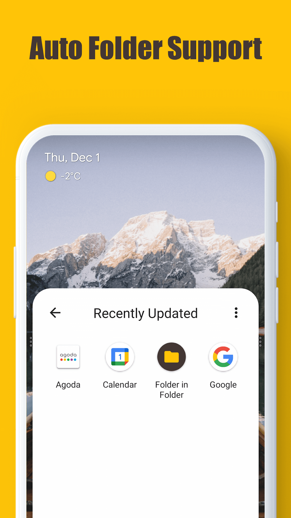 The Auto Folder is yet another exceptional component of the Folder in Folder system. This fixed folder cannot be changed but provides a simple way to sort your apps into categories. Your apps will be neatly organized into distinct sections like “Entertainment,” “Productivity,” “Games,” and more by the Auto Folder. This function will help you save time and energy by arranging your data for you. In addition to the Auto Folder, you may still make your folders to refine your app management further. A perfect combination of the two!