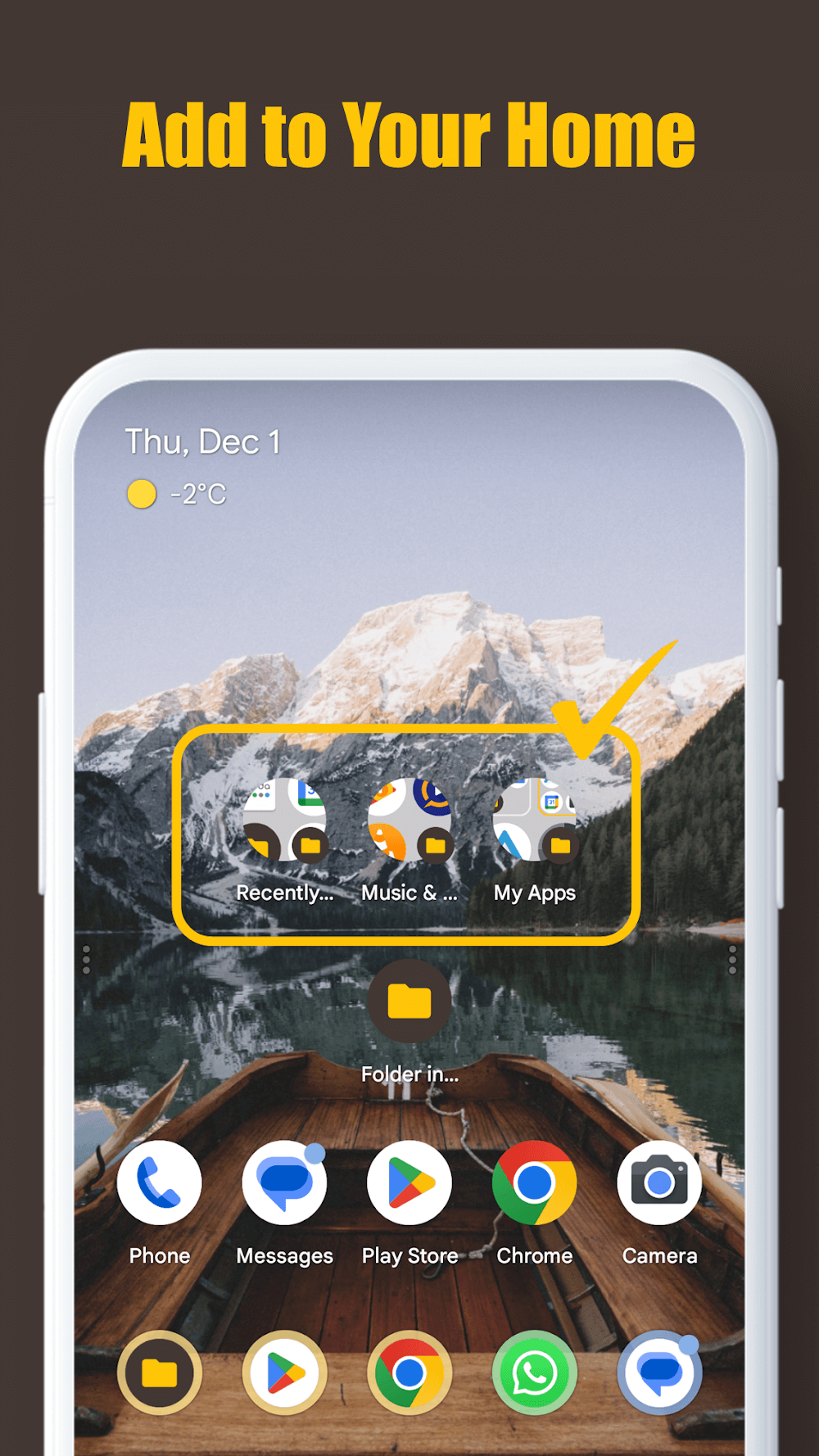 Folder in Folder makes adding neatly arranged folders to your home screen easy. Select the folders you want to add, and they will display on the home screen for simple access; no more delving through menus or searching for hidden options. The app works in tandem with your device’s home screen, making it easy to access your various folders. Folder in Folder allows you to customize your home screen, whether a bare-bones layout or a plethora of frequently-used apps.