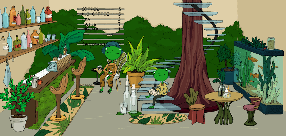 - And we can prepare Coffee and buy it for other frogs to collect more money.