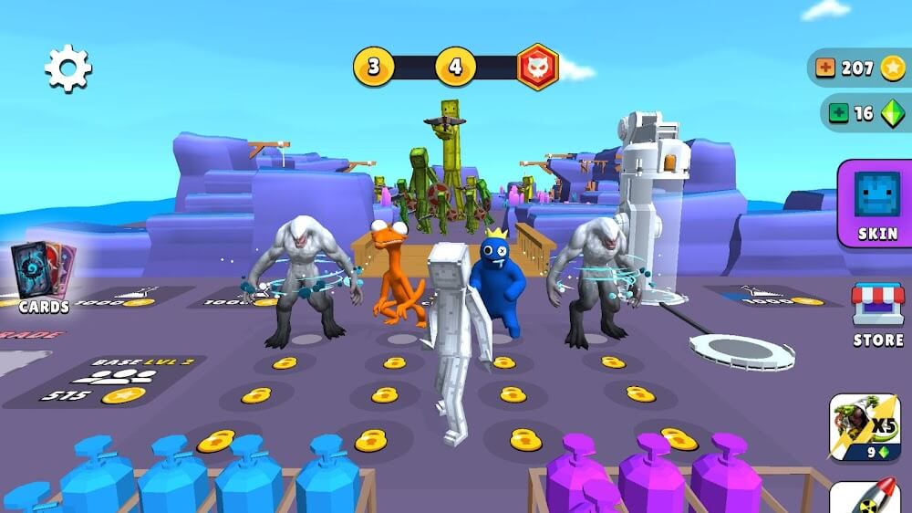 The monster-gathering system in Fruit vs. People Playground 3D is fantastic. Players can use syringes to level up the monster cards they’ve collected, which is quite significant. Numerous fantastic monsters from franchises like “Rainbow Friends,” “Garten of Ban Ban,” “Venom,” “Huggy Wuggy,” “SCP 173,” “SCP 096,” and “Boxy boo” are featured in the game. Each monster has its own set of skills, and by breeding them together, players can create entirely new mutations, contrary to popular belief. Strategic depth is brought to the game through the monster collection system.