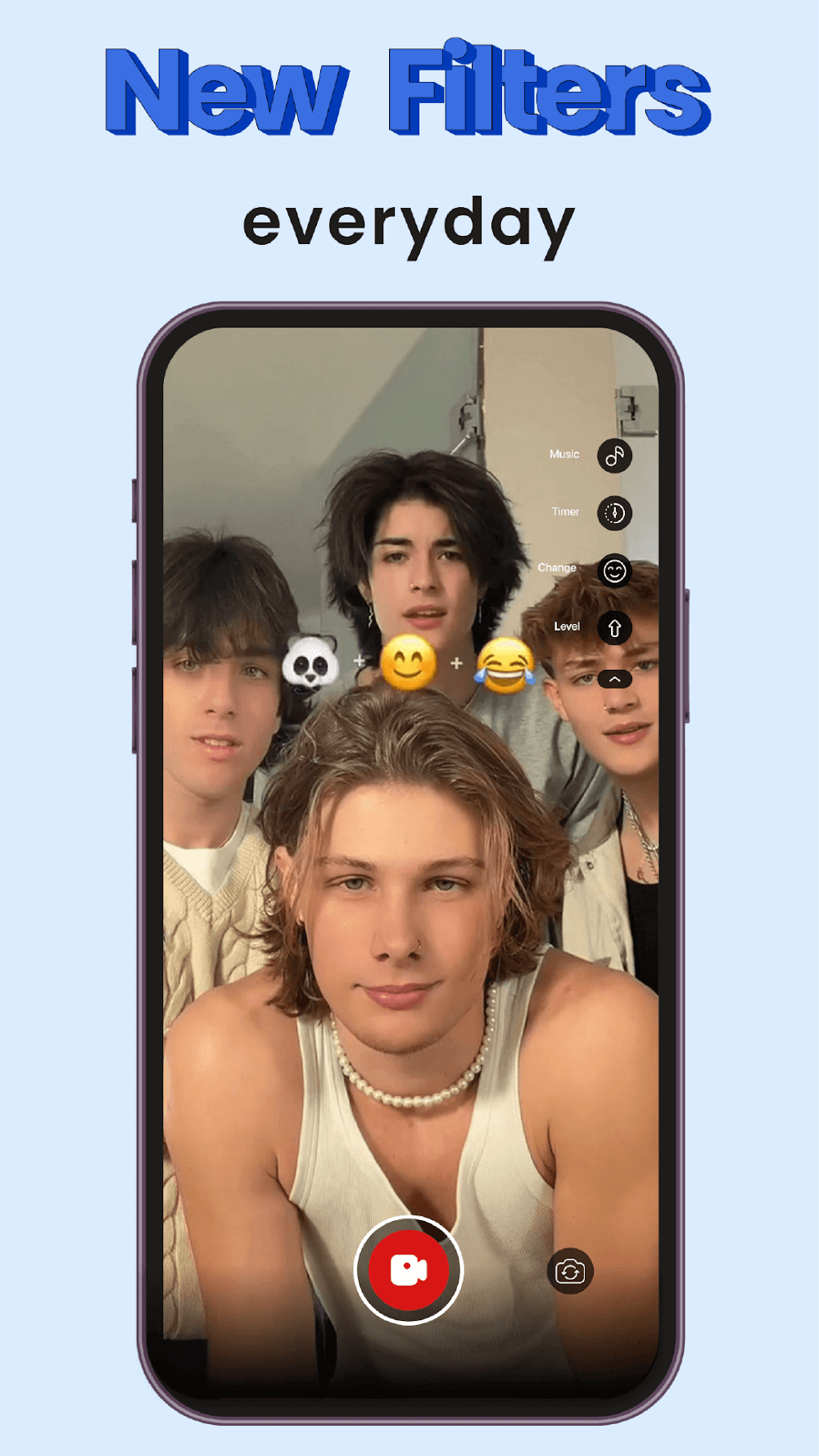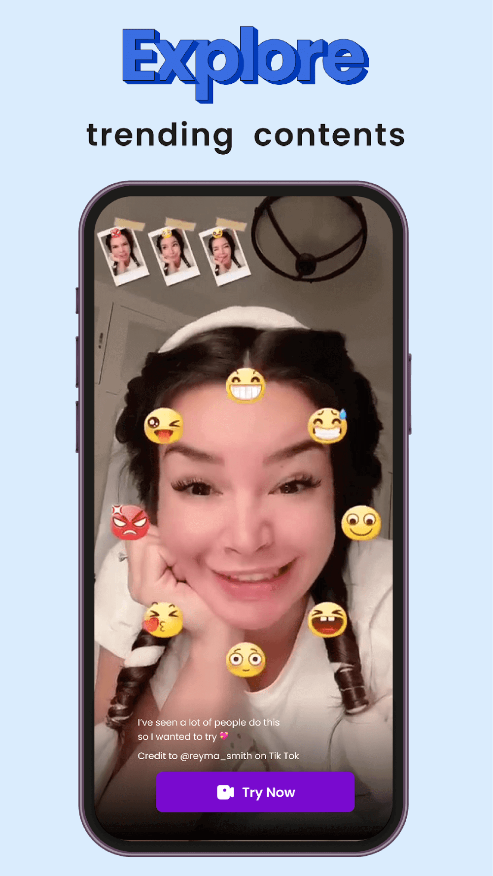 Cute Emojis can be a rich source of ideas for users to start recording a short video. A lot of interesting content will be created by users right after installing Funmoji – Funny Face Filters. Random Emoji filters will be distributed to users. Each filter will help users create a unique video to share on social networks.