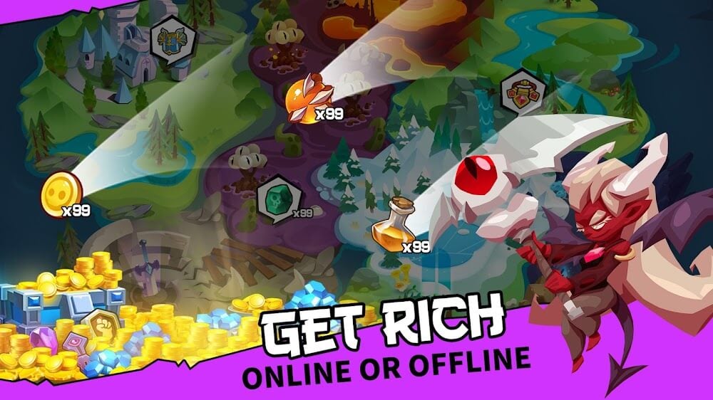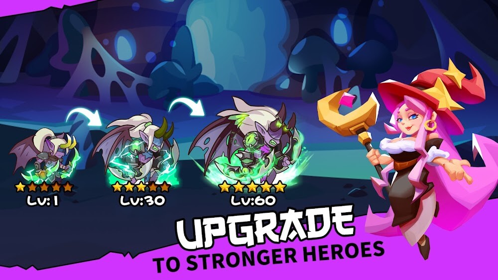 The best thing about the game is the idle feature, which allows you to maximize your revenue online or offline. You can also control or define a route for your team of heroes in offline mode, then return to claim the rewards they successfully collected. You can also take advantage of the auto-attack system for many other things, like researching skills or upgrading heroes to maximize the idle system and bring you many benefits.
