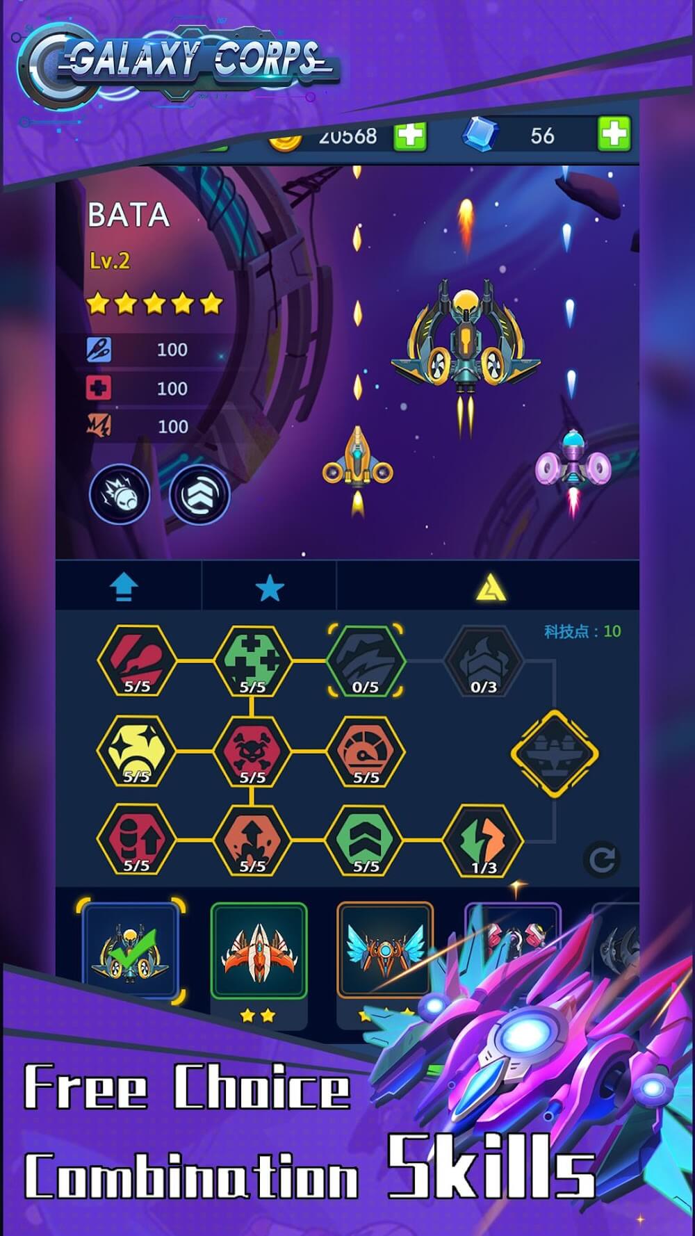 Galaxy Corps Mod Apk is a shooting game that is no longer strange to many gamers, and if you are a loyal fan of the aircraft shooting genre, it is not to be missed. The game is set in 2055 when an unknown civilization invades Earth in outer space. There are evil forces in space that are plotting to take over the world, and wars have begun to break out. Although human science has advanced dramatically and the enemy is eliminated one by one, it is still impossible to fully resist. Only you can take on the mission of the guardian of the galaxy and return peace to humanity. You will form your Galaxy legion and prepare for future wars.