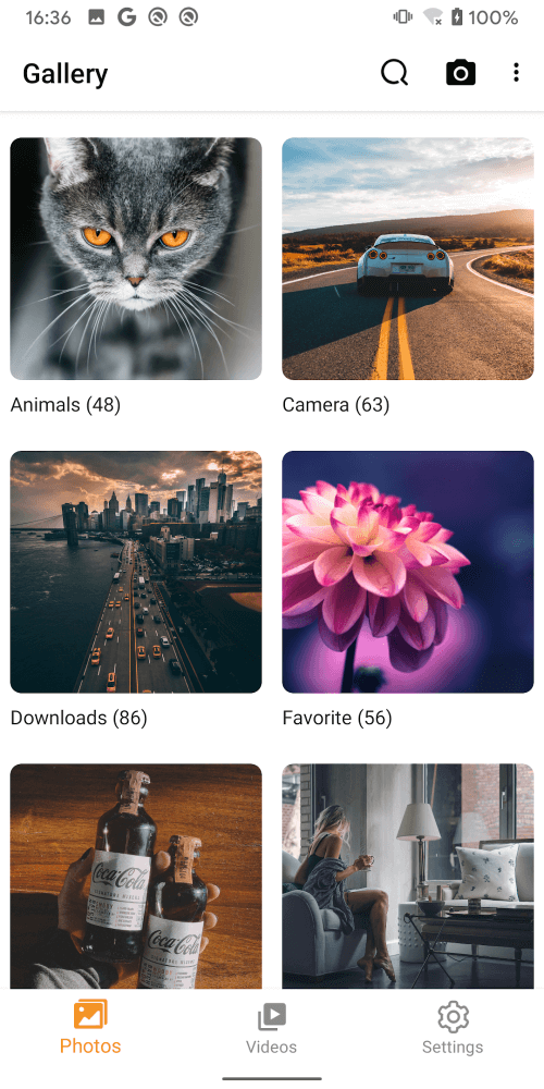 You can use Gallery support to add an SD card if you need more storage capacity. You can store albums on your SD card and take them everywhere. You can search for photographs and videos by image color using the current application. The algorithm automatically arranges similar colors into various groups to provide eye-catching results. You can keep your private images in a password-protected folder. Insert the photographs and movies that you want to keep hidden into it. They will be invisible to the device and any other programs. Only you can view those photos and videos with the password you learned in the application system.