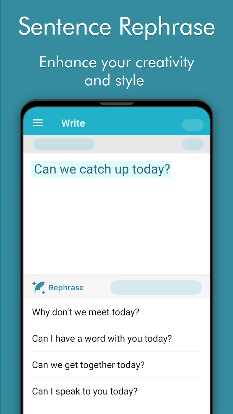 - Creative Alternative Suggestions: The Rephraser system uses AI to improve writing style and vocabulary seamlessly with inspiring alternatives.
