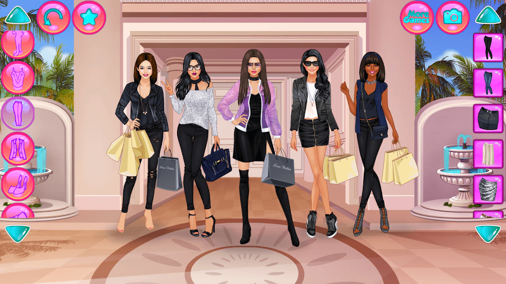 One fun aspect of Girl Squad is that players may style five different models simultaneously, on-screen, in coordinated ensembles. Those that enjoy dressing creatively would appreciate this feature. From streetwear to high couture, the game’s wardrobe options let you express your style.