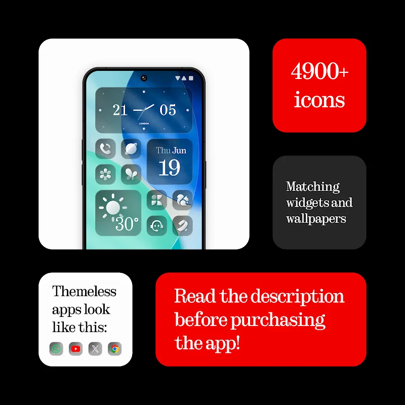 • Crystal-clear icons: The application brings you transparent icons. With these icons, your screen interface will become more unique and interesting. Making every moment of your use extremely enjoyable.