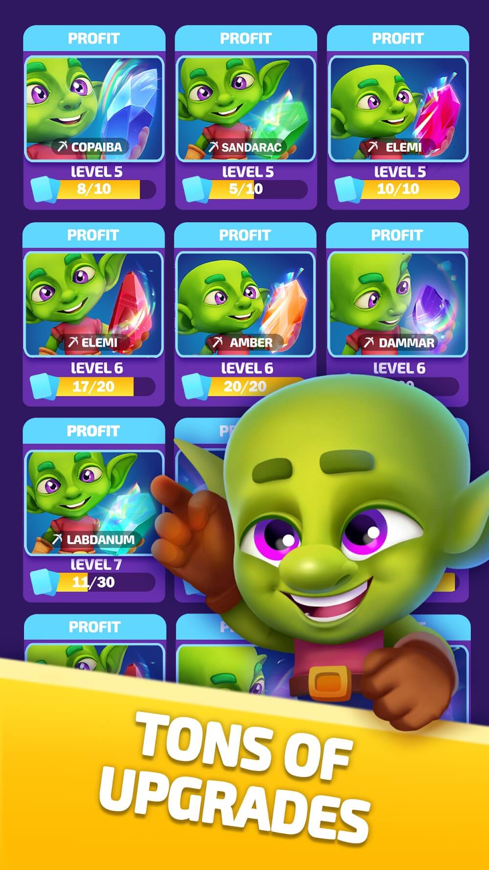 • Goblin characters unlock level-wise with different powers.